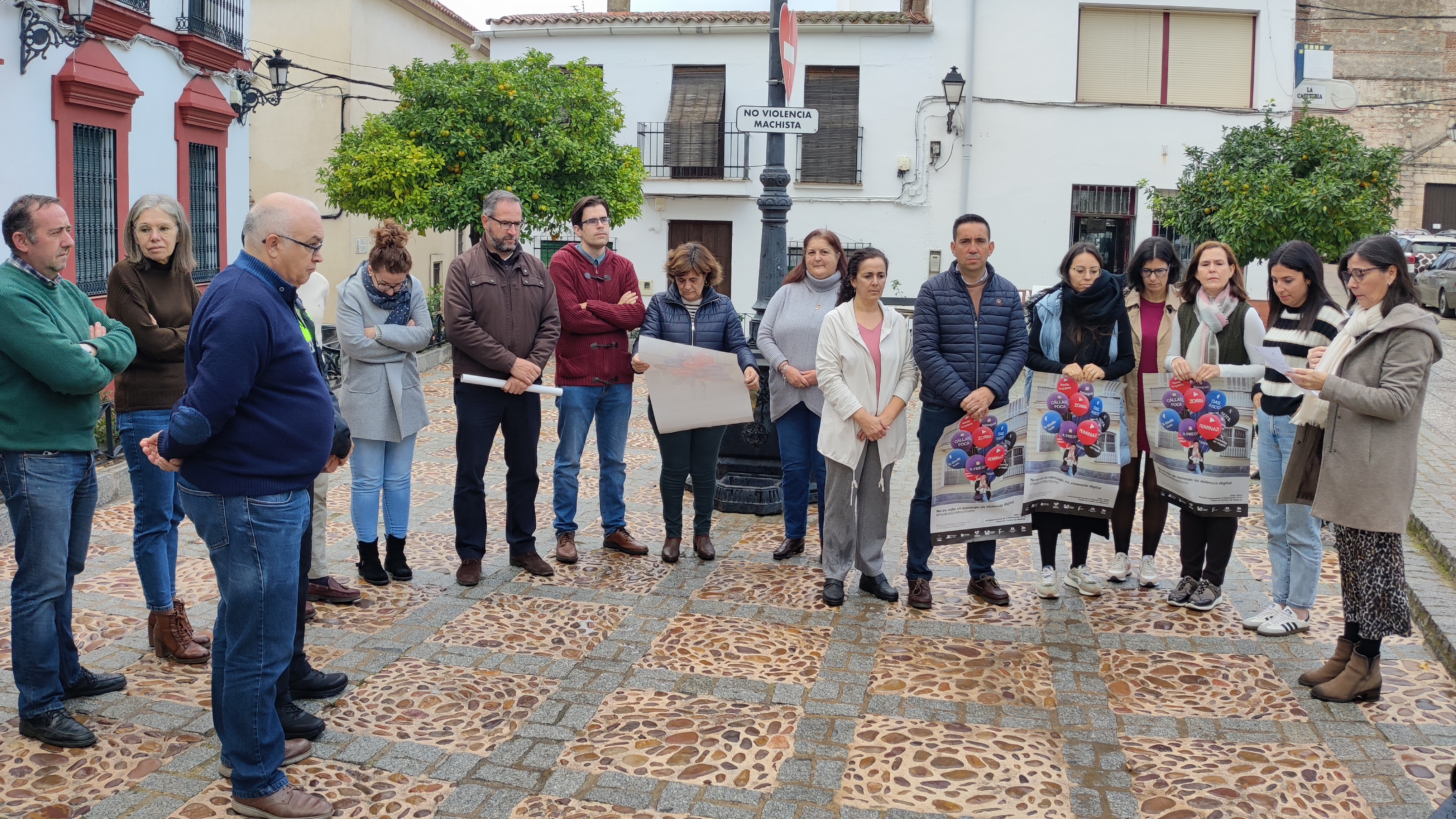 Finalmente, los asistentes se distribuyeron por el pueblo para realizar una pegada de carteles, con el objetivo de sensibilizar e informar a la comunidad sobre la importancia de reconocer y actuar frente a la violencia contra las mujeres.