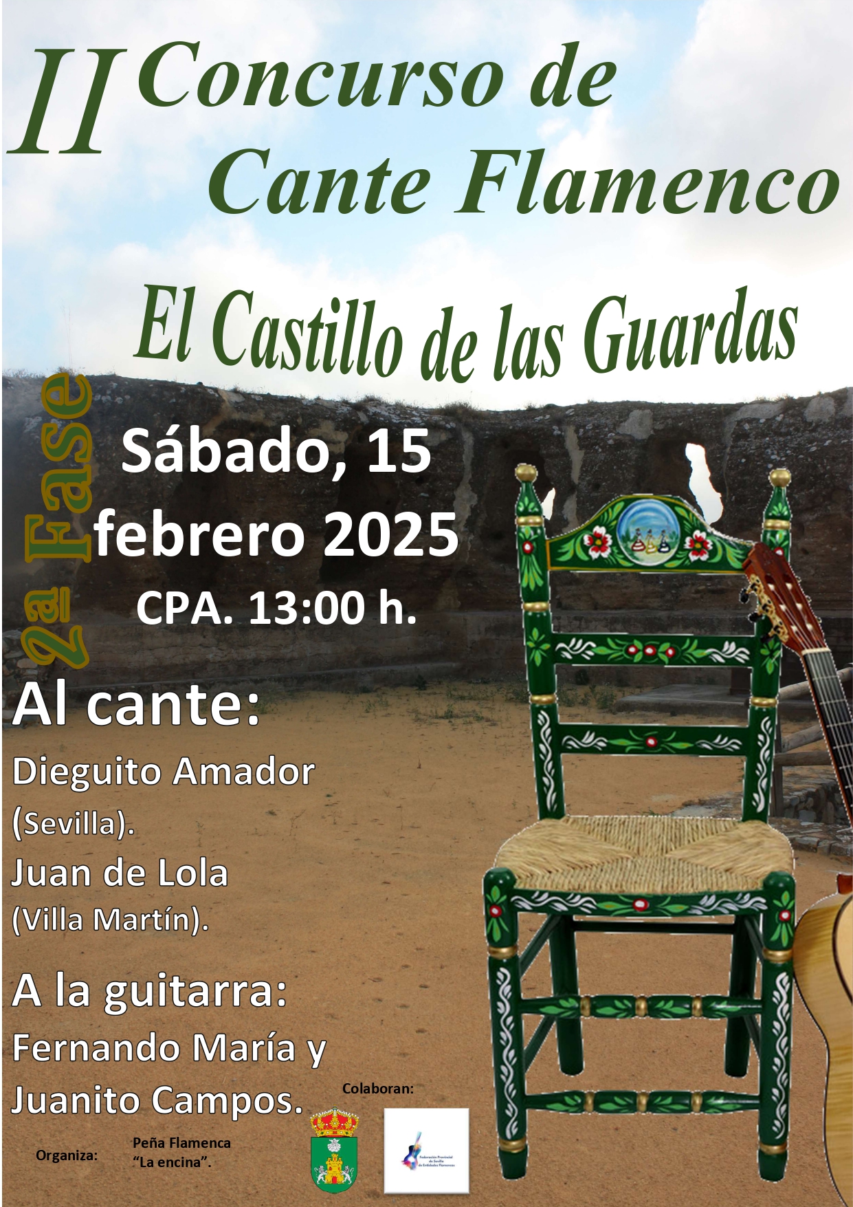 El próximo 15 de febrero, continuamos con el emocionante Concurso de Cante Flamenco, organizado por la Peña Flamenca La Encina. Una oportunidad única para disfrutar de la mejor música flamenca y apoyar nuestras tradiciones.