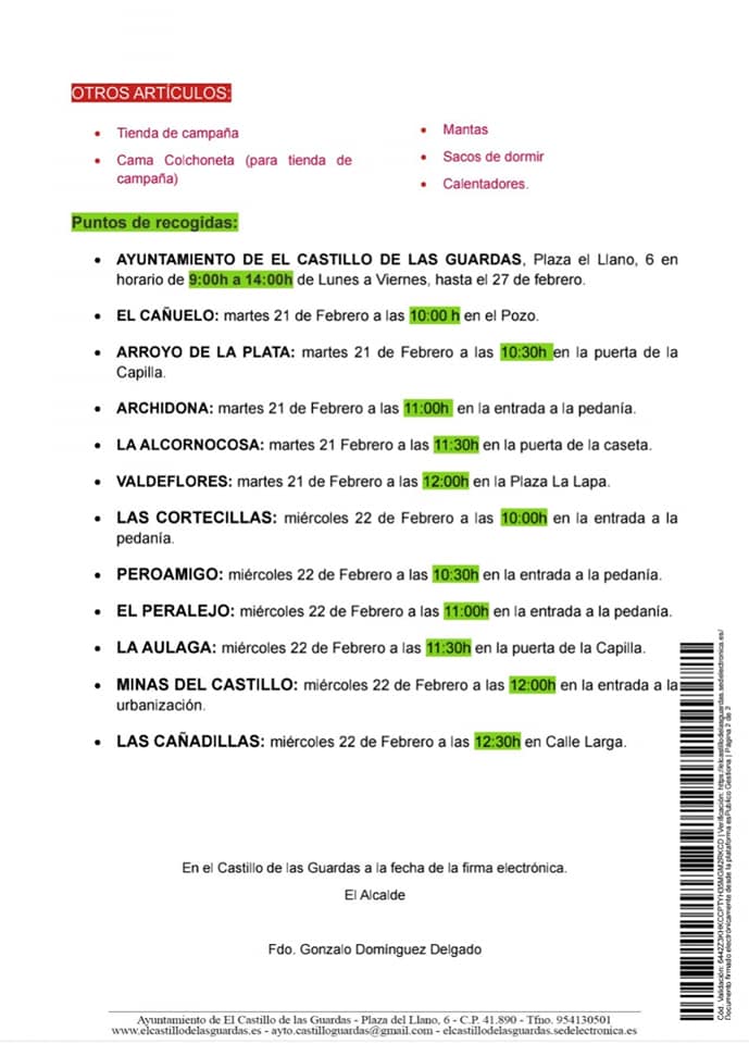 Así mismo adjuntamos las fechas y los puntos de recogida.