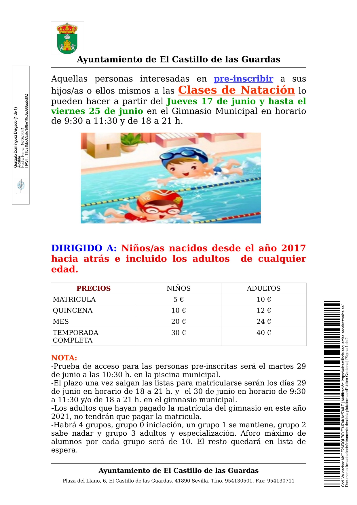 Ante el próximo inicio de la temporada de piscina municipal 2021, queremos trasladar nueva información relativa a las clases de natación y nado libre.